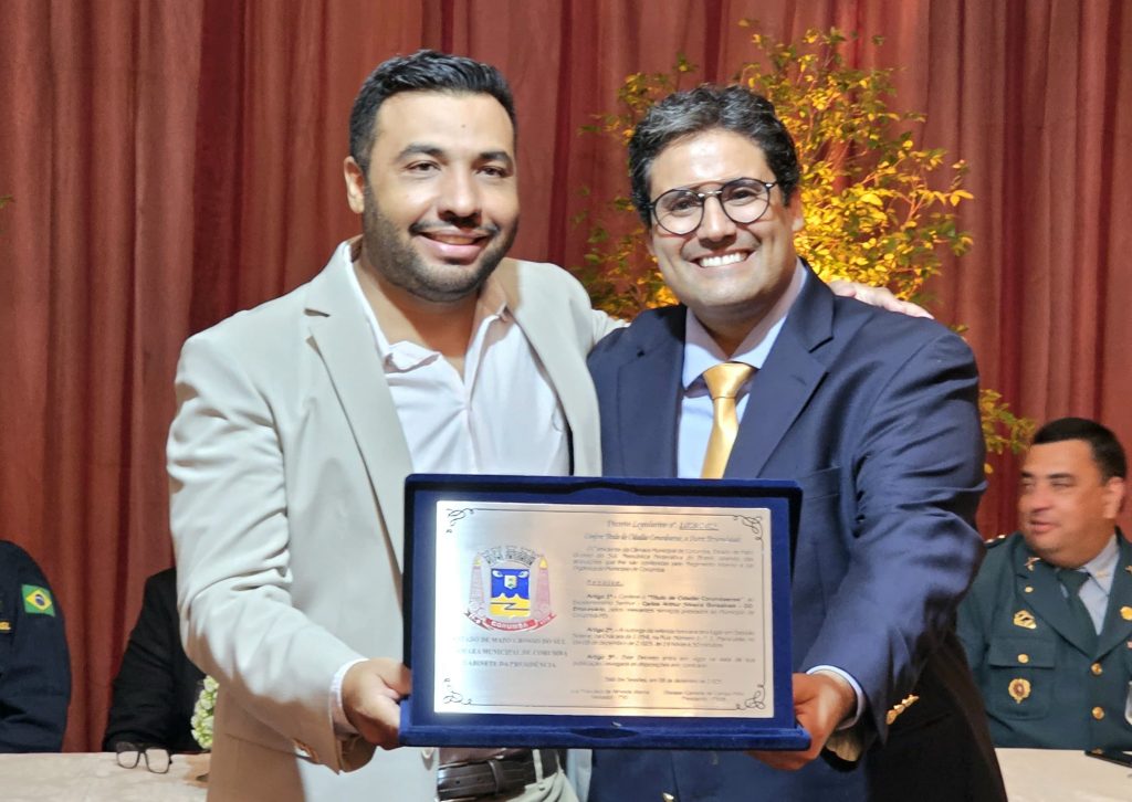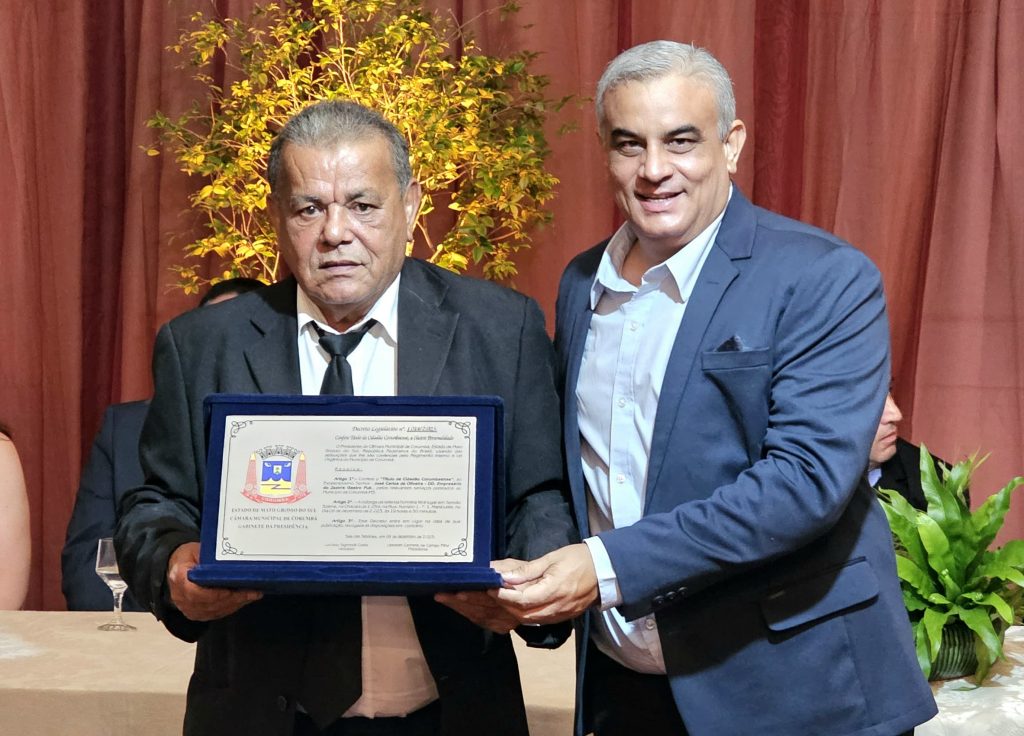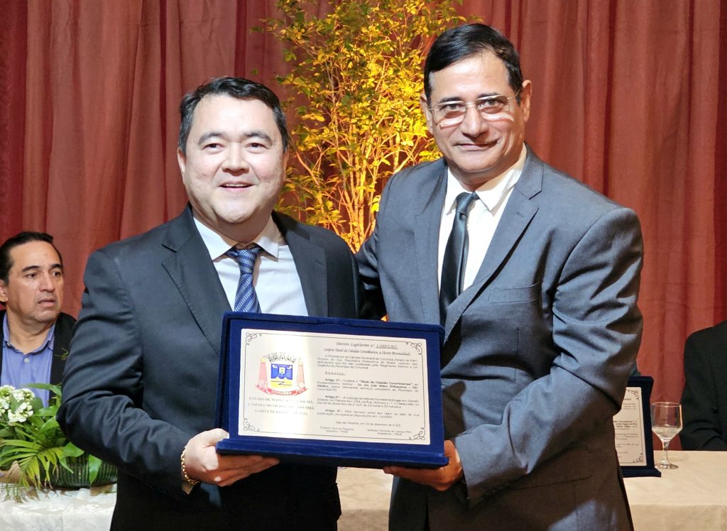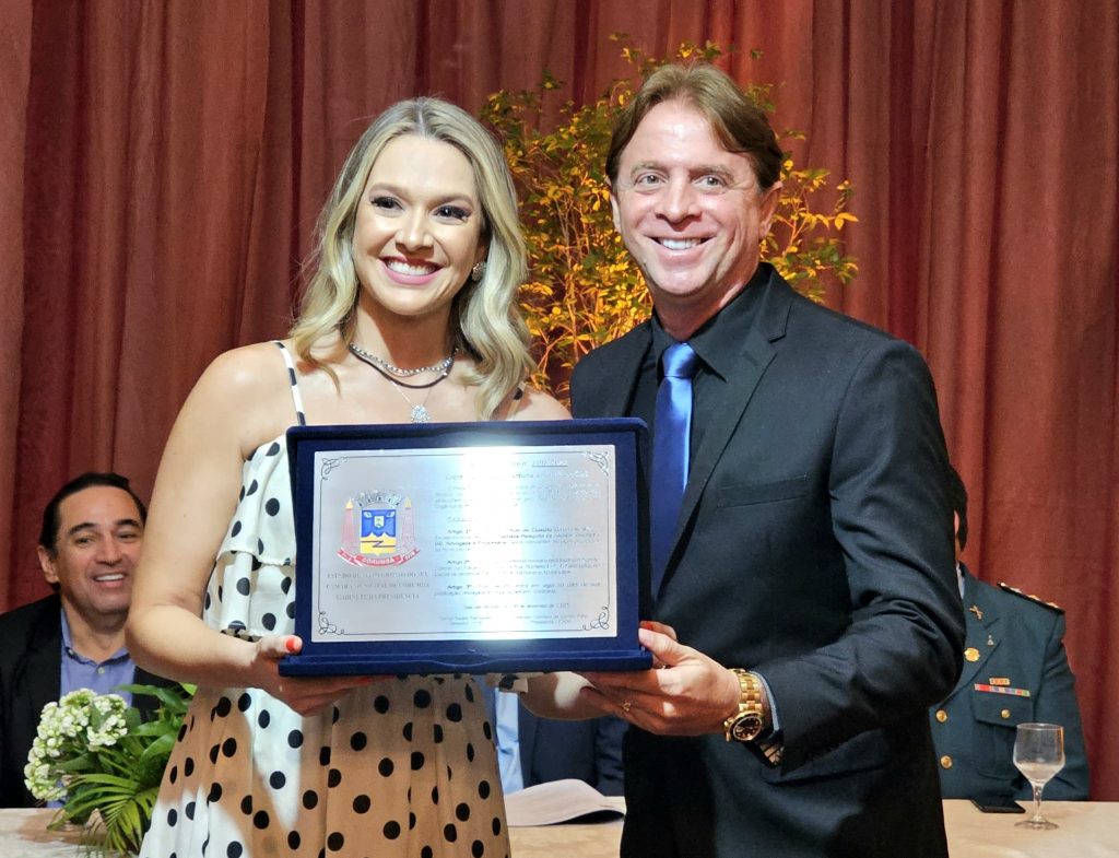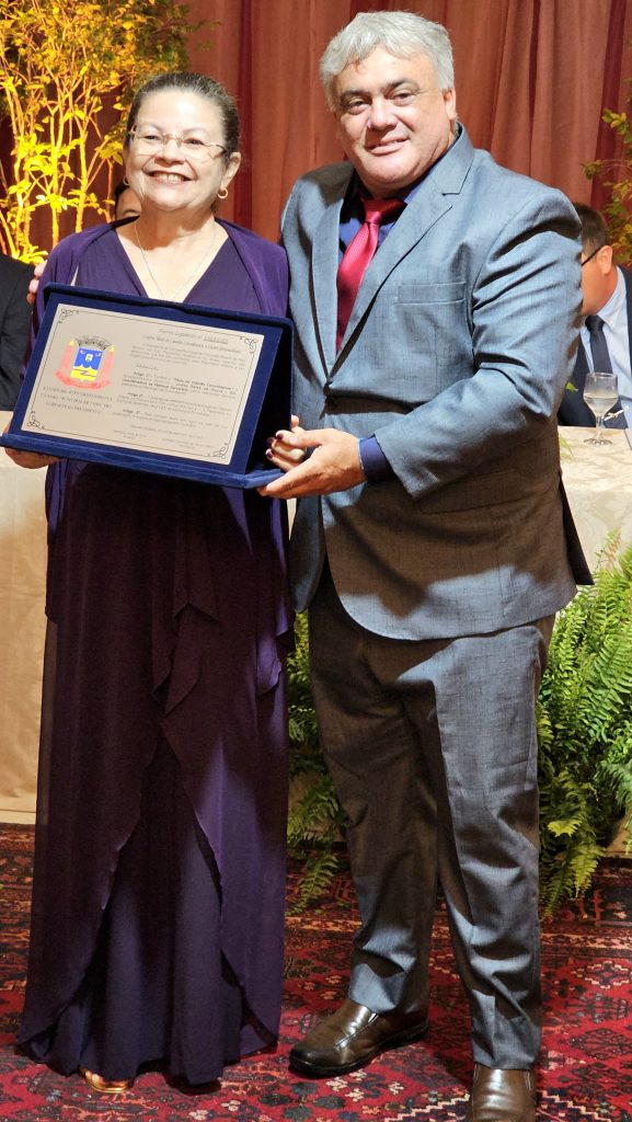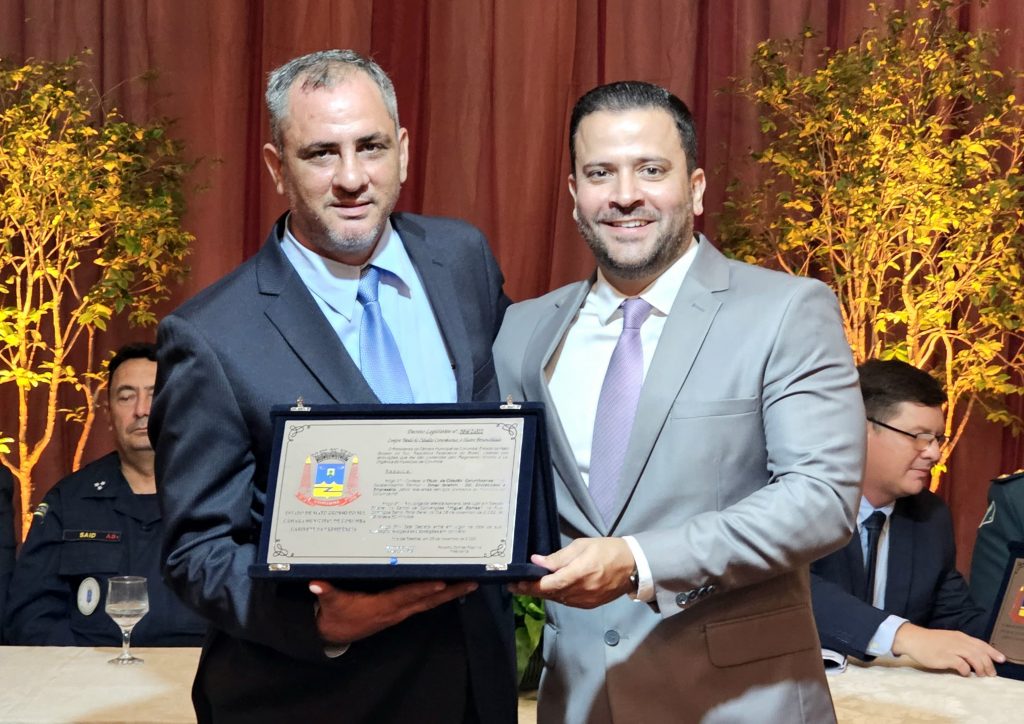 A condecoração ocorreu na noite de ontem, sexta-feira, 8 de dezembro, durante Sessão Solene no salão de eventos da Chácara da Mil, e foi comandado pelo presidente do Poder Legislativo corumbaense, Ubiratan Canhete de Campos Filho (Bira).