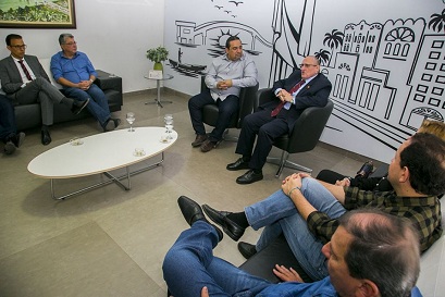 Depois da cerimônia de entrega, pela Sanesul, de um pacote de R$ 60,4 milhões em obras de ampliação do sistema de abastecimento de água e de esgotamento sanitário em Corumbá, Carmelo Leandro reuniu-se com o prefeito Marcelo Iunes, na Prefeitura.