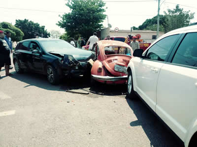 Uma colisão envolvendo três veículos mobilizou as viaturas de resgate e salvamento dos bombeiros por voltas das 11h deste sábado na rua general Dutra, próximo a passagem de nível da linha férrea, no bairro Centro América. A colisão foi entre um Fusca, um Vectra e um Dodge.